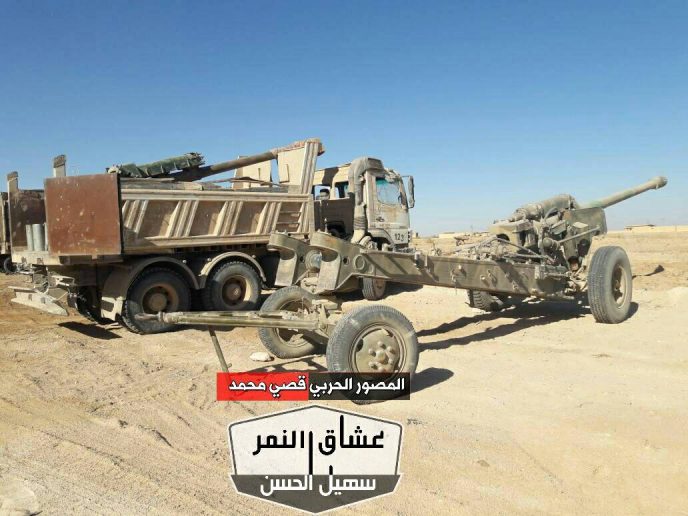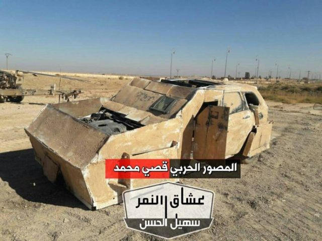 Σύμφωνα με τοπικά ΜΜΕ, τα πυροβόλα και τεθωρακισμένα που εικονίζονται τα πήραν οι κυβερνητικοί από τους τζιχαντιστές μετά την απελευθέρωση της πόλης Αλ Μαγιαντίν, της τελευταίας πρωτεύουσας της οργάνωσης Ισλαμικό Κράτος στη Συρία.