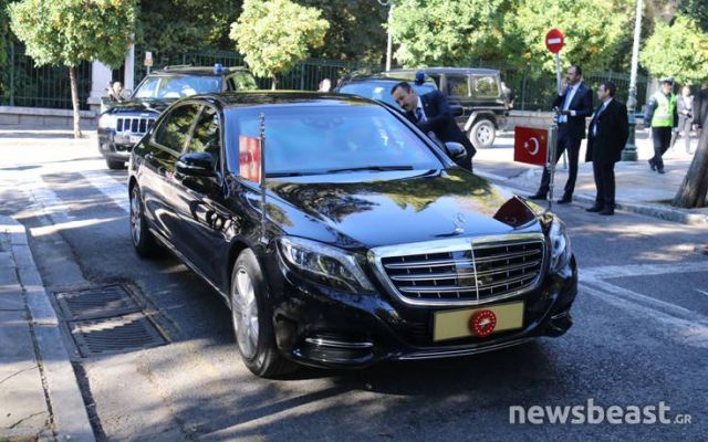 Εντύπωση προκάλεσε η πανάκριβη θωρακισμένη λιμουζίνα που μεταφέρει τον πρόεδρο της Τουρκίας Ρετζέπ Ταγίπ Ερντογάν.