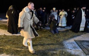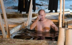 Ο Πούτιν έβγαλε το γούνινο παλτό με το οποίο είχε φτάσει στην αποβάθρα της λίμνης, μπήκε στο νερό από μια τρύπα που είχε ανοιχθεί και αφού έκανε τον σταυρό του βούτηξε το κεφάλι του μέσα στο νερό με τη θερμοκρασία να είναι στους -5 βαθμούς Κελσίου.
