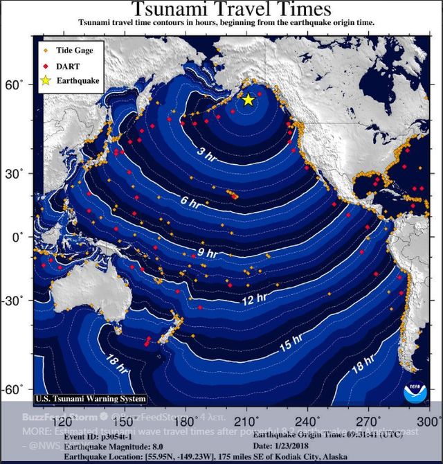 Ειδικότερα, η προειδοποίηση που εκδόθηκε αφορά στην νότια ακτή της Αλάσκας, τις Αλεούτιες Νήσους και την επαρχία της Βρετανικής Κολομβίας στον Καναδά.