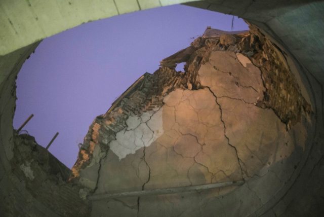 Η ρουκέτα χτύπησε τον τρούλο του τζαμιού με αποτέλεσμα αυτός να καταρρεύσει μερικώς, όπως μπορείτε να δείτε και στις φωτογραφίες που δημοσιεύουμε.