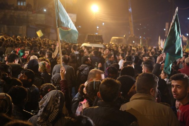 Εκατοντάδες Κούρδοι, που έφθασαν κατά τη διάρκεια της νύχτας της Δευτέρας στην Εφρίν της βορειοδυτικής Συρίας, από τις κουρδικές περιοχές της βορειοανατολικής Συρίας, διαδήλωσαν την Τρίτη για να επιδείξουν αλληλεγγύη στους κατοίκους του κουρδικού θύλακα, όπου βρίσκονται σε εξέλιξη οι στρατιωτικές επιχειρήσεις της Άγκυρας.
