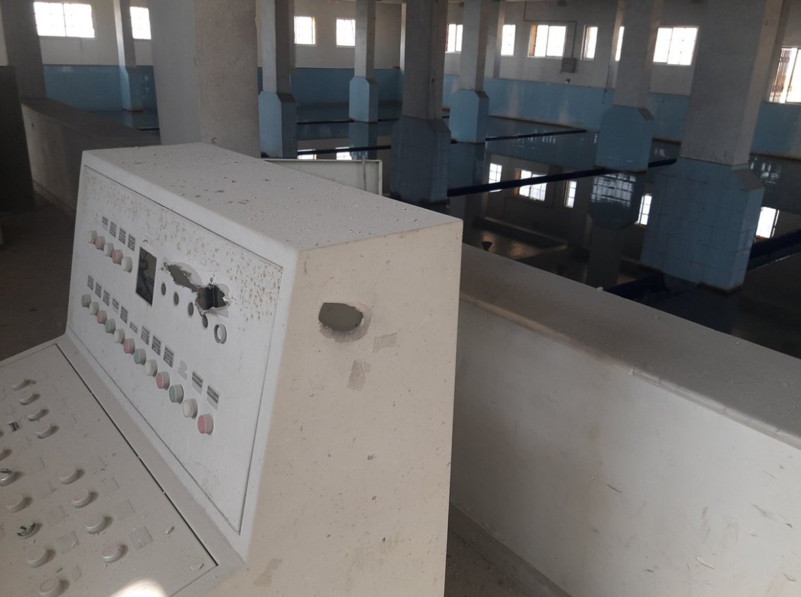 Ο υπάλληλος του σταθμού ανέφερε ότι από τα θραύσματα ενός βλήματος τέθηκαν εκτός λειτουργίας μερικά τμήματα της επιχειρησιακής διοίκησης στο κεντρικό τμήμα της μονάδας υδροδότησης.