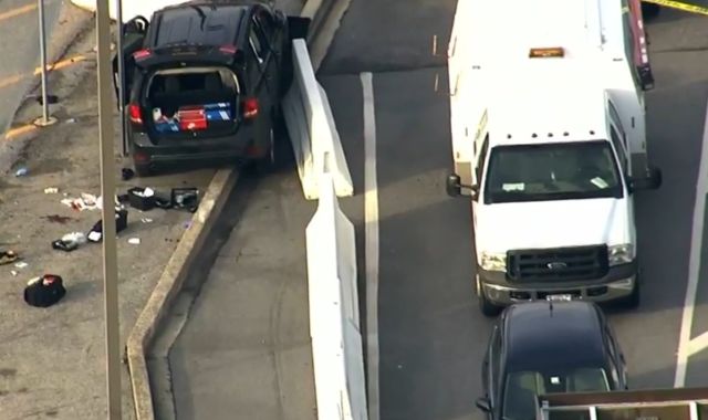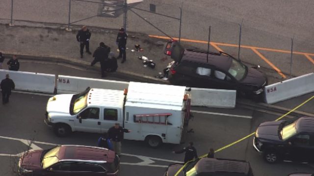 Το τηλεοπτικό κανάλι NBC Washington μετέδωσε εικόνες στις οποίες διακρίνεται ένα μαύρο όχημα σφηνωμένο στις μπάρες που προστατεύουν την είσοδο του πολύ καλά φυλασσόμενου συγκροτήματος.