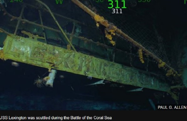 Το USS Lexington εντοπίστηκε σε βάθος 3 χλμ. στην Θάλασσα των Κοραλλίων που βρίσκεται στη βορειοανατολική ακτή της Αυστραλίας, ενώ είχε χαθεί στη Μάχη της Κοραλλικής Θάλασσας στις 4 – 8 Μαΐου 1942. Περισσότερα από 200 μέλη του πληρώματος πέθαναν στις μάχες.