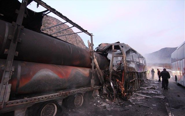 Σύμφωνα με την ίδια πηγή, το δυστύχημα σημειώθηκε τα ξημερώματα στην επαρχία Κόρουμ, βορειοανατολικά της Άγκυρας, όταν ένα λεωφορείο από την Κωνσταντινούπολη και κατεύθυνση την Τοκάτ έπεσε πάνω σε ένα φορτηγό.