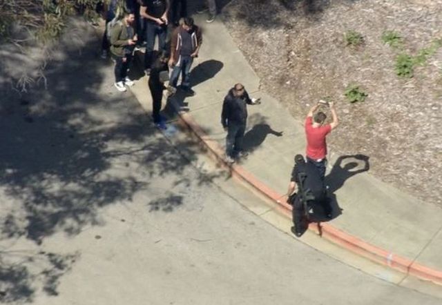 Τοπικά τηλεοπτικά δίκτυα μετέδωσαν πλάνα που εικονίζουν υπαλλήλους του YouTube καθώς βγαίνουν από το κτίριο με τα χέρια υψωμένα.