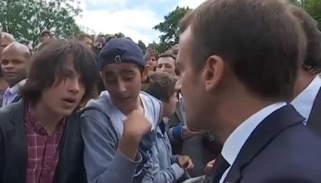 Έξαλλος ήταν ο Εμανουέλ Μακρόν με την οικειότητα ενός Γάλλου φοιτητή στο πρόσωπό του αφού του παρέδωσε μαθήματα συμπεριφοράς κατά τη διάρκεια επίσημης επίσκεψής του στο Μον Βαλεριάν, στα δυτικά προάστια της πόλης των Παρισίων.