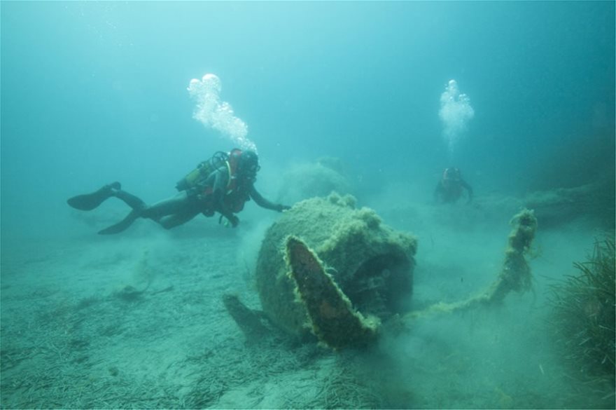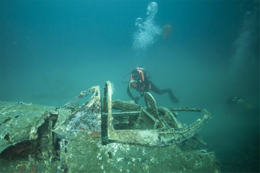 Στρατιωτικοί δύτες κολύμπησαν στις 2 Ιουλίου, πάνω από τα συντρίμμια ενός αμερικανικού μαχητικού αεροσκάφους P47 Thunderbolt του Β’ Παγκοσμίου Πολέμου.