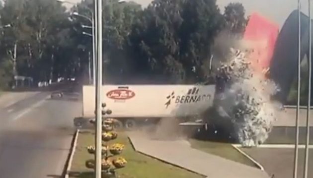 Ο οδηγός της νταλίκας πέθανε ακαριαία από τη σύγκρουση, ενώ το μνημείο στον ρωσικό δρόμο σχεδόν γκρεμίστκε.