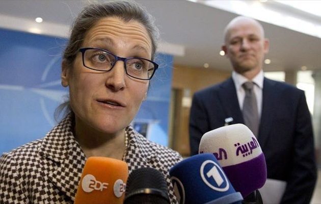 «Να γίνει σαφές σε όλους ότι η καναδική κυβέρνηση εννοεί «να υπρασπίζεται πάντα τα ανθρώπινα δικαιώματα, στον Καναδά και στον υπόλοιπο κόσμο» υπογράμμισε η Καναδή υπουργός Εξωτερικών, Κρίστια Φρίλαντ, στην πρώτη τοποθέτησή της για την διπλωματική κρίση, που ξέσπασε.