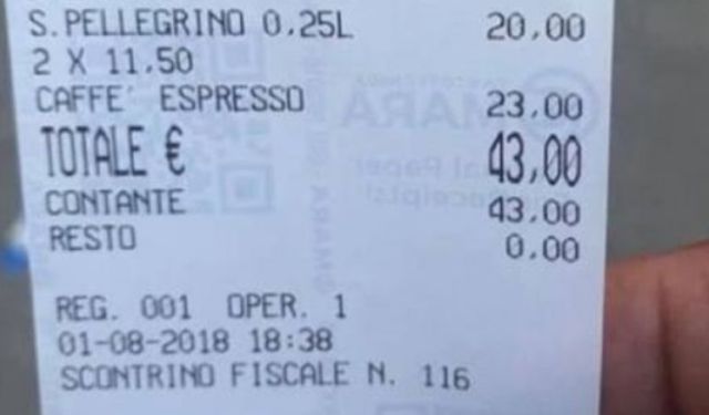 Δύο καφέδες και δύο μπουκαλάκια νερό κόστισαν 43 ευρώ.