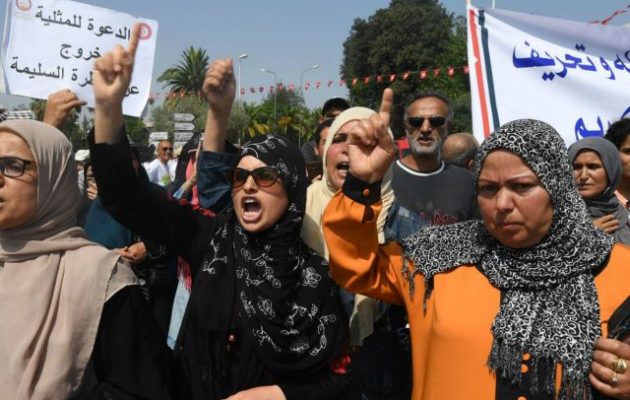 Χιλιάδες ισλαμιστές έκαναν πορεία το Σάββατο από το κέντρο της πρωτεύουσας της Τυνησίας, Τύνιδα, προς το προάστιο Μπαρντό διαδηλώνοντας κατά της ισότητας των φύλων.