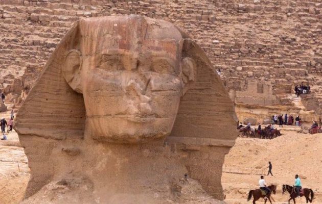 Με σώμα λιονταριού και κεφάλι ανθρώπου, η Μεγάλη Σφίγγα της Γκίζας, που δεσπόζει δίπλα στη Μεγάλη Πυραμίδα, έχει μήκος 73 μέτρα και ύψος 20 μέτρα.