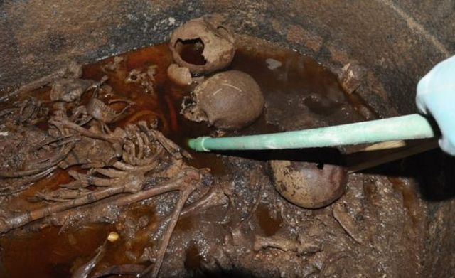Ο ίδιος εξήγησε ότι το περίεργο χρώμα του υγρού που βρέθηκε μέσα στη σαρκοφάγο είναι αποτέλεσμα μόλυνσης από τα λύματα, που προκάλεσε την αποσύνθεση των περιτυλιγμάτων των σκελετών, ενώ επιπλέον αναλύσεις διεξάγονται στο υγρό ώστε να ανακαλυφθούν περαιτέρω στοιχεία για τα συστατικά του.