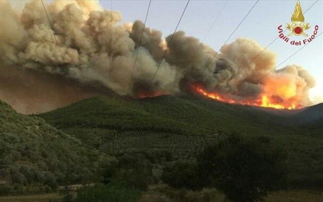 Η πυρκαγιά ξέσπασε αργά χθες το βράδυ στη δασική περιοχή του Μόντε Σέρα και λόγω των ισχυρών ανέμων επεκτάθηκε γρήγορα απειλώντας τις περιοχές Κάλτσι, Μοντεμάνιο και Σαν Λορέντσο ε λα Τόρε.