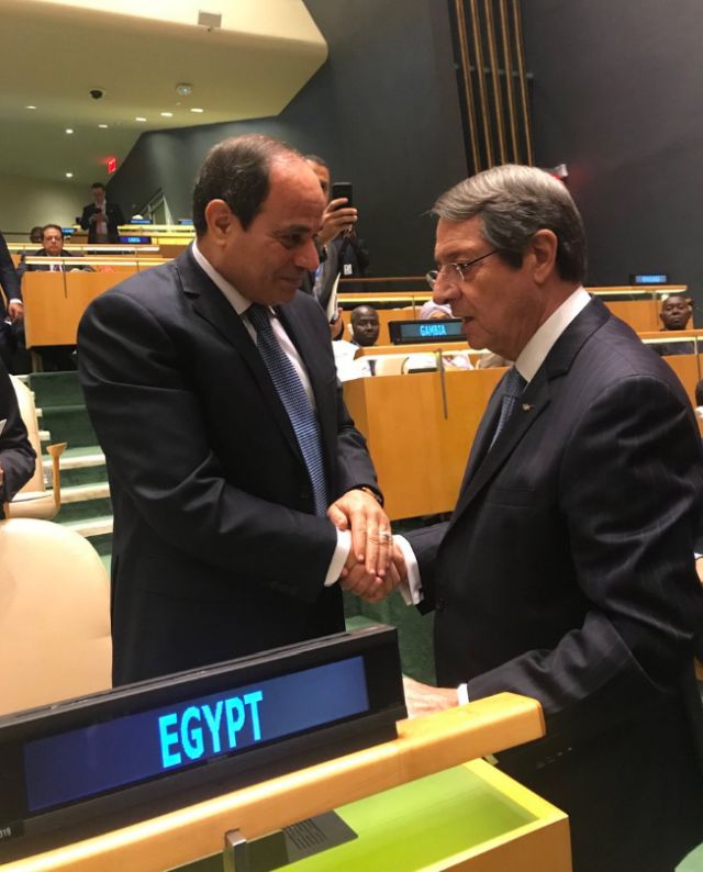 Η εγκάρδια και ειλικρινή χειραψία που αντάλλαξαν ο πρόεδρος της Κυπριακής Δημοκρατίας, Νίκος Αναστασιάδης, με τον πρόεδρο της Αιγύπτου, Άμπντελ Φάταχ αλ Σίσι, εντός της αίθουσας της Γενικής Συνέλευσης του ΟΗΕ, ήταν ένα ακόμα ηχηρό ράπισμα στον Ρετζέπ Ταγίπ Ερντογάν. Μάλιστα η στιγμή απαθανατίστηκε και φωτογραφικά.