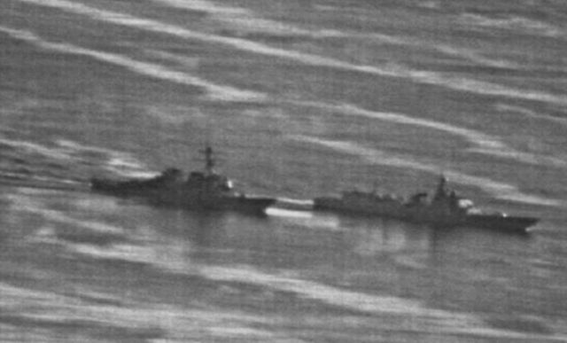 Αυτή είναι η φωτογραφία που έδωσε στη δημοσιότητα το Αμερικανικό Πολεμικό Ναυτικό, που δείχνει το περιστατικό μεταξύ του USS Decatur, αριστερά, και του κινεζικού πολεμικού πλοίου Luoyang.