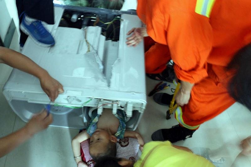 Το 3χρονο αγοράκι τρύπωσε στο πλυντήριο την ώρα που οι γονείς του ήταν απασχολημένοι με τους καλεσμένους τους, με αποτέλεσμα να εγκλωβιστεί.