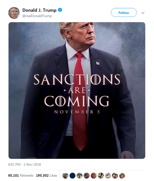 Ο Ρεπουμπλικάνος πρόεδρος, που εφαρμόζει εχθρική πολιτική έναντι του Ιράν αφότου ανέλαβε την εξουσία, επέβαλε τον Αύγουστο μια πρώτη σειρά οικονομικών κυρώσεων στην Τεχεράνη.