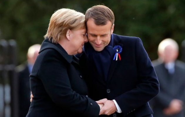 Ο πρόεδρος της Γαλλίας Εμανουέλ Μακρόν και η καγκελάριος της Γερμανίας Άνγκελα Μέρκελ επιθεώρησαν το άγημα μιας κοινής γαλλογερμανικής ταξιαρχίας προτού κάνουν τα αποκαλυπτήρια μιας πλακέτας, φόρο τιμής στη συμφιλίωση και την φιλία μεταξύ των αντιπάλων στους δύο παγκόσμιους πολέμους.