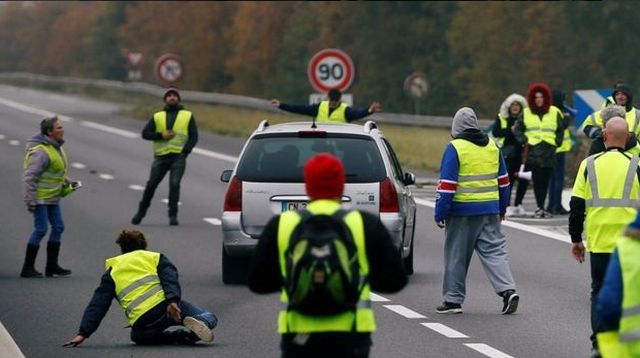 Η κινητοποίηση των «Κίτρινων Γιλέκων», όπως ονομάστηκε από τα χαρακτηριστικά γιλέκα, που οφείλουν να φορούν όσοι εργάζονται σε οδικά δίκτυα ή και οι οδηγοί σε περίπτωση έκτακτης ανάγκης εξαπλώθηκε σε ολόκληρη τη χώρα, με αποκλεισμούς δρόμων, που παρέλυσαν μεγάλα κόμματια του δικτύου.
