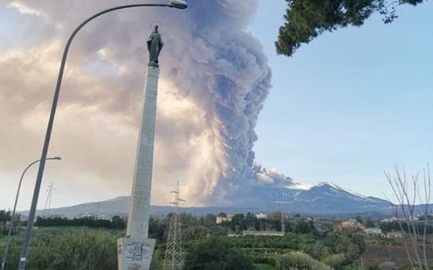Η Αίτνα, το υψηλότερο και ενεργότερο ηφαίστειο της Ευρώπης, εξερράγη σήμερα, παραμονή Χριστουγέννων, με αποτέλεσμα να υψωθεί μια τεράστια στήλη τέφρας στον ουρανό και οι Αρχές να κλείσουν το αεροδρόμιο της Κατάνιας στις ανατολικές ακτές της Σικελίας.