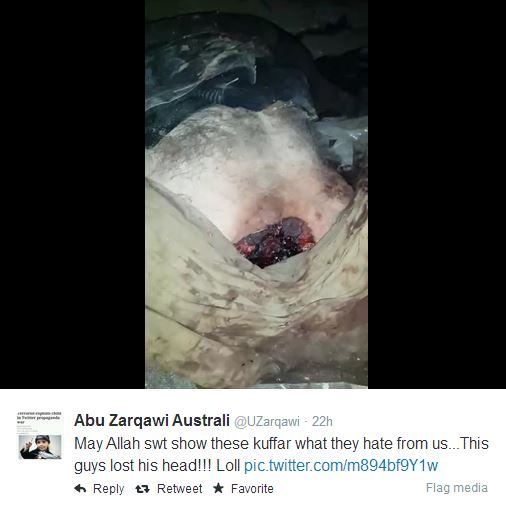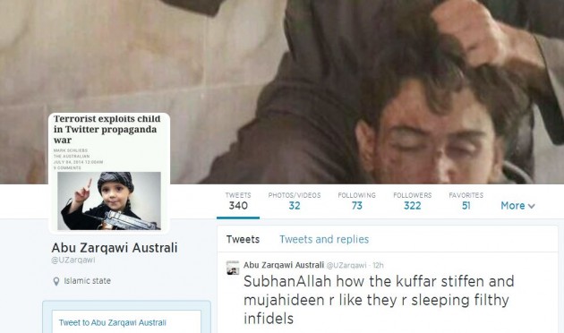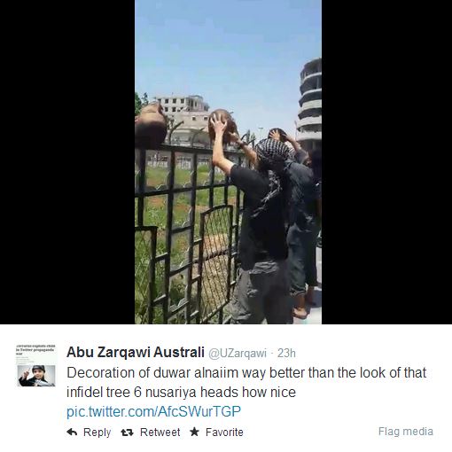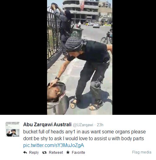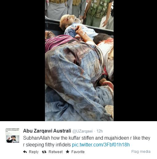 Στο twitter εμφανίζεται ως Abu Zarqawi Australi @UZarqawi και γράφει στους συμπατριώτες του στην Αυστραλία στις λεζάντες των φωτογραφιών με τους νεκρούς: “Χρειάζεται κάποιος κανένα όργανο; Μην ντρέπεστε να ζητήσετε!”.