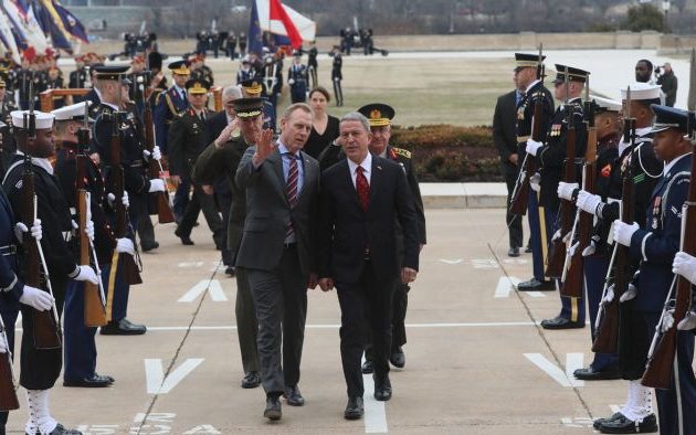 Οι εκκρεμότητες στη Συρία, αλλά και η ανησυχία των ΗΠΑ για την απόκτηση του ρωσικού αντιπυραυλικού συστήματος S-400 από την Άγκυρα, βρέθηκαν στο επίκεντρο της συνάντησης του υπηρεσιακού υπουργού Άμυνας των ΗΠΑ Πάτρικ Σάναχαν με τον Τούρκο ομόλογο του Χουλουσί Ακάρ που πραγματοποιήθηκε στο αμερικανικό Πεντάγωνο.