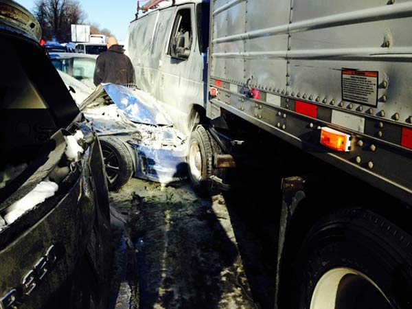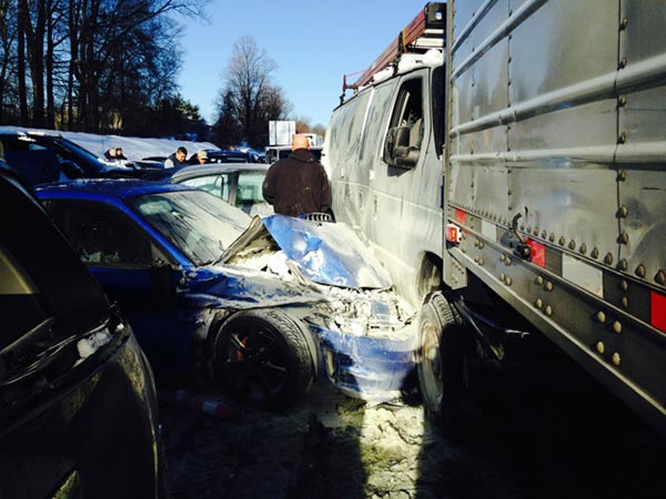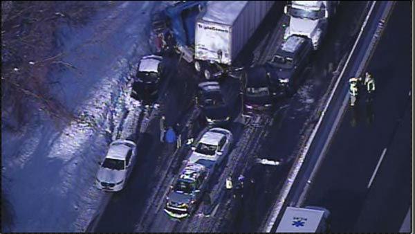 Τουλάχιστον 16 άτομα τραυματίστηκαν και μεταφέρθηκαν σε νοσοκομεία, όταν για άγνωστο λόγο ένα προπορευόμενο όχημα έχασε τον έλεγχο, με αποτέλεσμα περισσότερα από 100 αυτοκίνητα να τρακάρουν σε μία πρωτοφανή καραμπόλα.