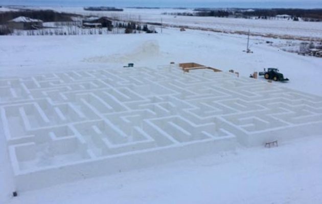 Με τον μεγαλύτερο λαβύρινθο από χιόνι στον κόσμο, ο Κλιντ και η Άντζι Μας από την καναδική επαρχία Μανιτόμπα κατάφεραν να καταρρίψουν Ρεκόρ Γκίνες και να μπουν στο Guinness Book of World Records.