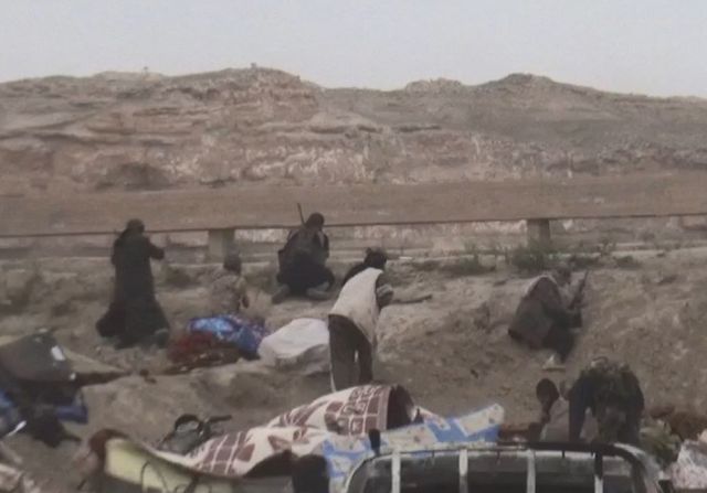 Τα ίδια οχήματα τα έστησαν στη συνέχεια οι τζιχαντιστές ως οχυρωματικά εμπόδια.