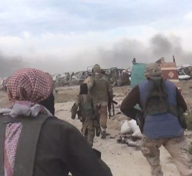 Οι τζιχαντιστές πολιορκούνται από τις υπό κουρδική διοίκηση Συριακές Δημοκρατικές Δυνάμεις (SDF) και βομβαρδίζονται ανηλεώς από τον Διεθνή Συνασπισμό υπό τις ΗΠΑ.