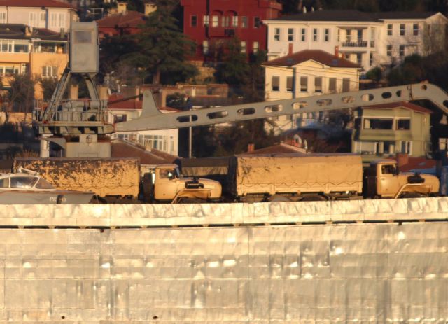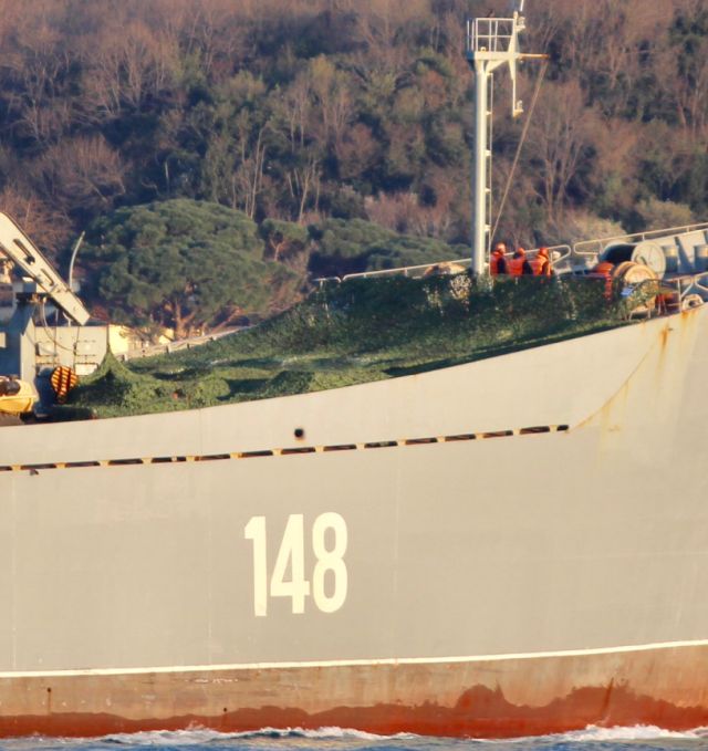 Όπως φωτογράφισε το παρατηρητήριο του Βοσπόρου «Yoruk Isik», πέρασε τα Στενά το ρωσικό μεταγωγικό του στόλου της Μαύρης Θάλασσας, «LST Orsk 148», που μετέφερε φορτηγά.