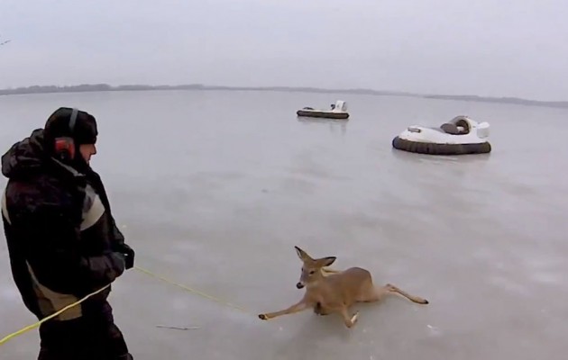 Τα δύο ελάφια είχαν παγιδευτεί στην παγωμένη λίμνη Αλμπερτ στη Μινεσότα. Δεν μπορούσαν να κινηθούν αφού γλιστρούσαν πάνω στον πάγο.