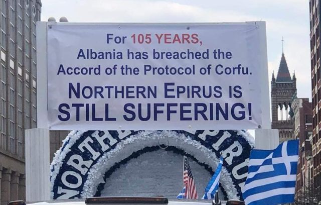 Σύμφωνα με τα όσα γράφηκαν σε βορειοηπειρωτικές σελίδες στα μέσα κοινωνικής δικτύωσης, για την παρέλαση της 25ης Μαρτίου μεταφέρθηκε «η σημαία του Κωνσταντίνου Κατσίφα στη Βοστώνη – ΗΠΑ».