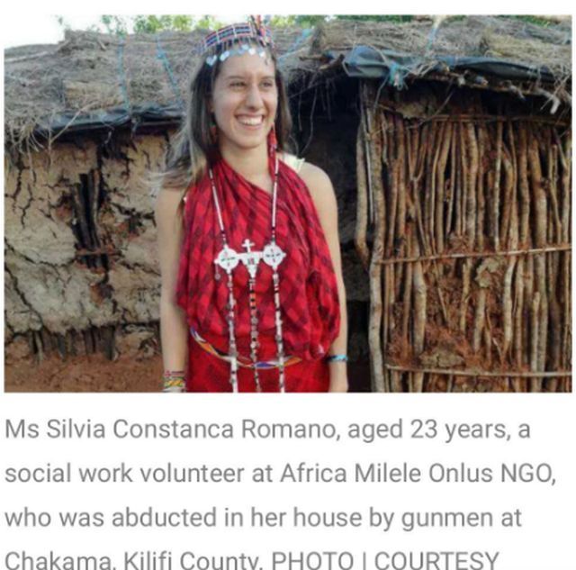 Τον Νοέμβριο μια Ιταλίδα εθελόντρια έπεσε θύμα απαγωγής από το χωριό Τσακάμα στη νοτιοανατολική Κένυα από μια ένοπλη οργάνωση που άνοιξε πυρ εναντίον των κατοίκων του χωριού, με αποτέλεσμα να τραυματίσει πέντε ανθρώπους, ανάμεσά τους και δύο παιδιά. Ακόμη δεν έχει εντοπιστεί.