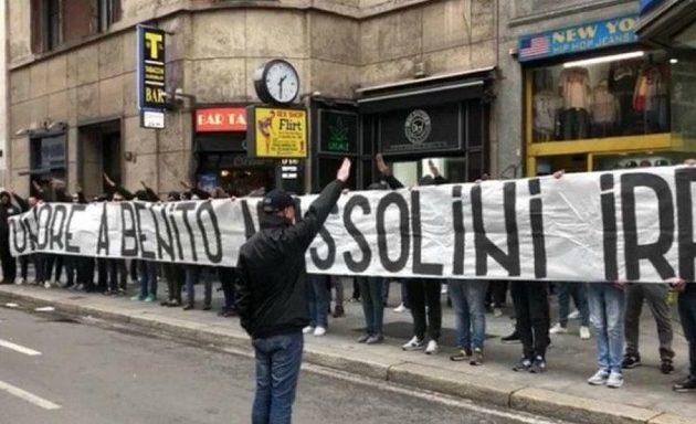 Συγκεκριμένα, όπως αναφέρει τηλεγράφημα του ιταλικού πρακτορείου ειδήσεων, ένας ακροδεξιός πυρήνας των Ultras των Λατσιάλι, οι λεγόμενοι «Irreducibili», που ταξίδεψαν στο Μιλάνο για το παιχνίδι, ύψωσαν πανό κοντά στην Πιατσάλε Λορέτο, την πλατεία όπου κρεμάστηκε το πτώμα του Μουσολίνι μετά την εκτέλεσή του από Ιταλούς παρτιζάνους το 1945 με το μήνυμα «Τιμή στον Μπενίτο Μουσολίνι».