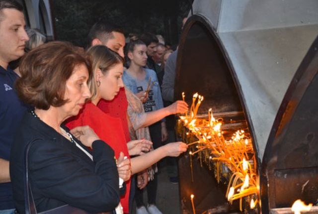 Η υποψήφια των «αρχαιομακεδόνων» σφετεριστών της Μακεδονίας επισκέφθηκε την εκκλησία του Αγίου Νικολάου στο Κουμάνοβο τη Μεγάλη Παρασκευή.