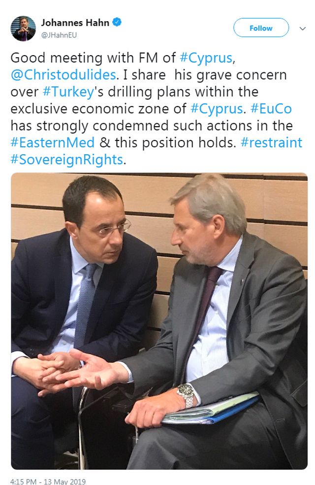 Σε αυτό το πλαίσιο τόνισε ότι με τις ενέργειές της, «η Τουρκία δεν ενεργεί κατά των ενεργειακών σχεδιασμών της Κυπριακής Δημοκρατίας, αλλά κατά των συμφερόντων ολόκληρης της EE».