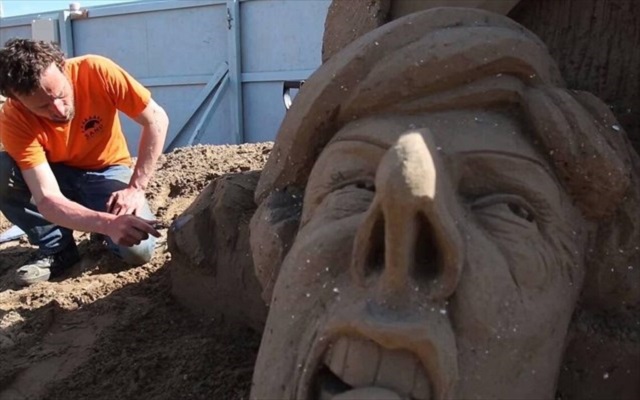 Γιγαντιαίο γλυπτό από άμμο αποκαλύφθηκε στο Φεστιβάλ του Γουέστον σούπερ Μέιρ, στη νοτιοδυτική Αγγλία.