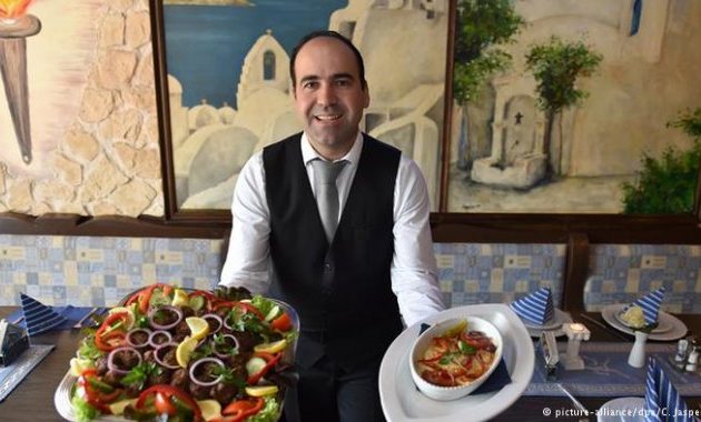 «Καλώς ήρθατε Άνγκελα Μέρκελ στο εστιατόριο «Ολυμπιακή Φωτιά». Το τεράστιο πλακάτ που έχει τοποθετηθεί έξω από το ελληνικό εστιατόριο του Αλέξη, του είχε κοστίσει χίλια ευρώ», γράφει η «Bild»