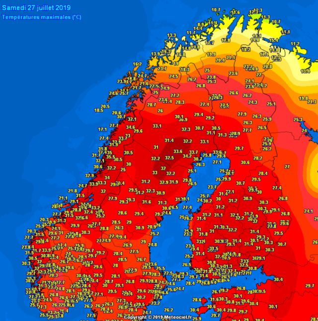Όπως ανακοίνωσε το Σάββατο 27 Ιουλίου το Μετεωρολογικό Ινστιτούτο της Σουηδίας, οι σκανδιναβικές χώρες βρίσκονται αντιμέτωπες με υψηλές θερμοκρασίες, καθώς ο ιστορικός καύσωνας που σάρωσε την Ευρώπη μετακινείται προς τον ευρωπαϊκό βορρά, προκαλώντας σε ορισμένες περιοχές «τροπικές νύχτες».