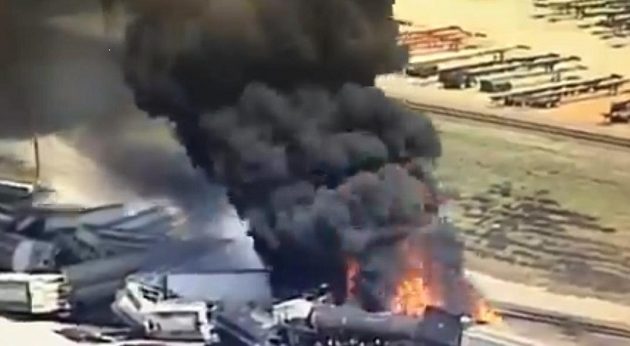 Σε κατάσταση έκτακτης ανάγκης τέθηκε η περιοχή Ντούπο στο Ιλινόις των ΗΠΑ, όταν μια αμαξοστοιχία εκτροχιάστηκε και αμέσως τυλίχθηκε στις φλόγες, προκαλώντας τον τρόμο στην περιοχή.