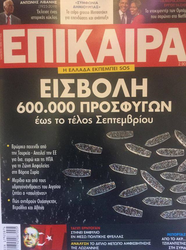 Μη χάσετε τα «Επίκαιρα» Σεπτεμβρίου που κυκλοφόρησαν το Σάββατο 14 Σεπτεμβρίου. Το περιοδικό αποκαλύπτει τι «παίζει» με το προσφυγικό. Που στοχεύει ο Ερντογάν, τι επιδιώκει, πώς χρησιμοποιεί τους πρόσφυγες ως «εργαλείο» και «όπλο» στους νεο-οθωμανικούς σχεδιασμούς του.