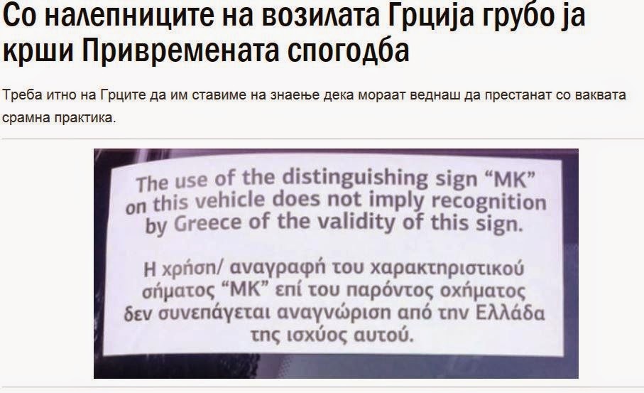 Άρα η Ελλάδα δεν έχει καμία βάση, πόσο μάλλον δικαίωμα να αγνοεί, να αρνείται, να μην αποδέχεται και να απορρίπτει ή να καλύπτει το υπό… αμφισβήτηση σήμα «ΜΚ» των αυτοκινήτων μας.