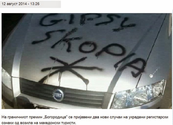 Η πρώτη περίπτωση αναφέρεται σε κάτοικο του Βέλες, κάτοχο οχήματος τύπου Opel Vectra του οποίου αφαίρεσαν τις πινακίδες, επειδή είχαν την ένδειξη ΜΚ. Ο ίδιος είχε καταγγείλει την κλοπή στις 10 Αυγούστου σε θέρετρο της Κατερίνης, όπου διέμενε.