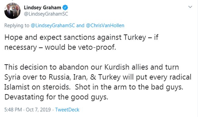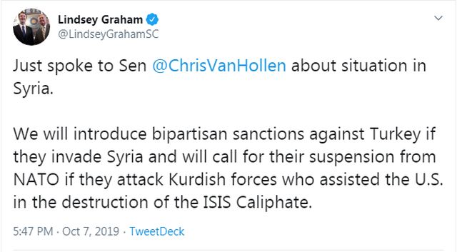 1) Κυρώσεις στην Τουρκία και 2) αποπομπή της από το ΝΑΤΟ αν επέμβει στην Συρία κατά των Κούρδων.