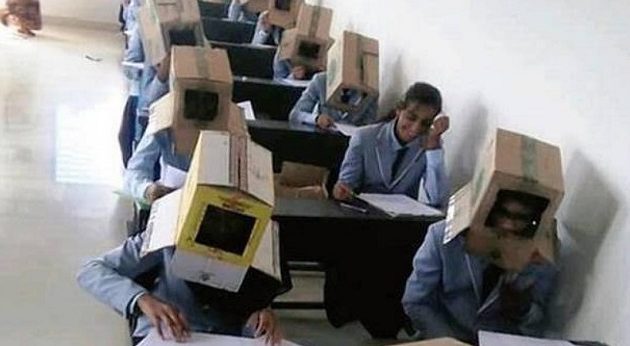 Ένας εργαζόμενος του πανεπιστημίου Bhagat Pre-University College ανέβασε στο προφίλ του στο Facebook φωτογραφίες των φοιτητών την ώρα που εξετάζονταν με… κούτες στο κεφάλι τους.