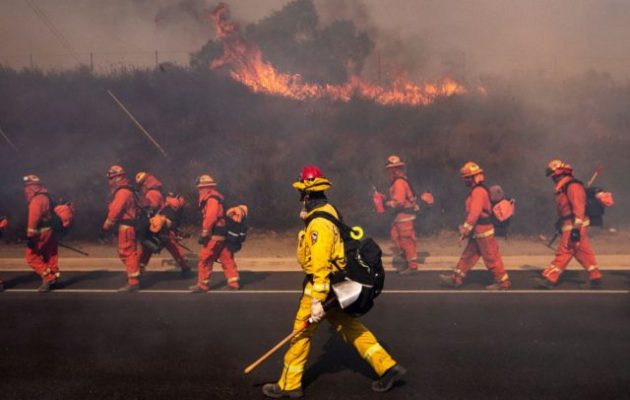 Στο Σαν Μπερναρντίνο, σε απόσταση 100χλμ ανατολικά του Λος Άντζελες, η φωτιά Hillside ξέσπασε τη νύχτα.